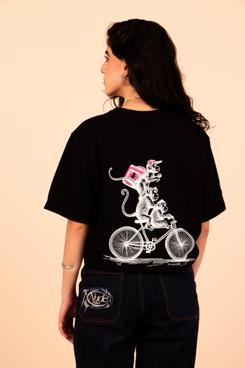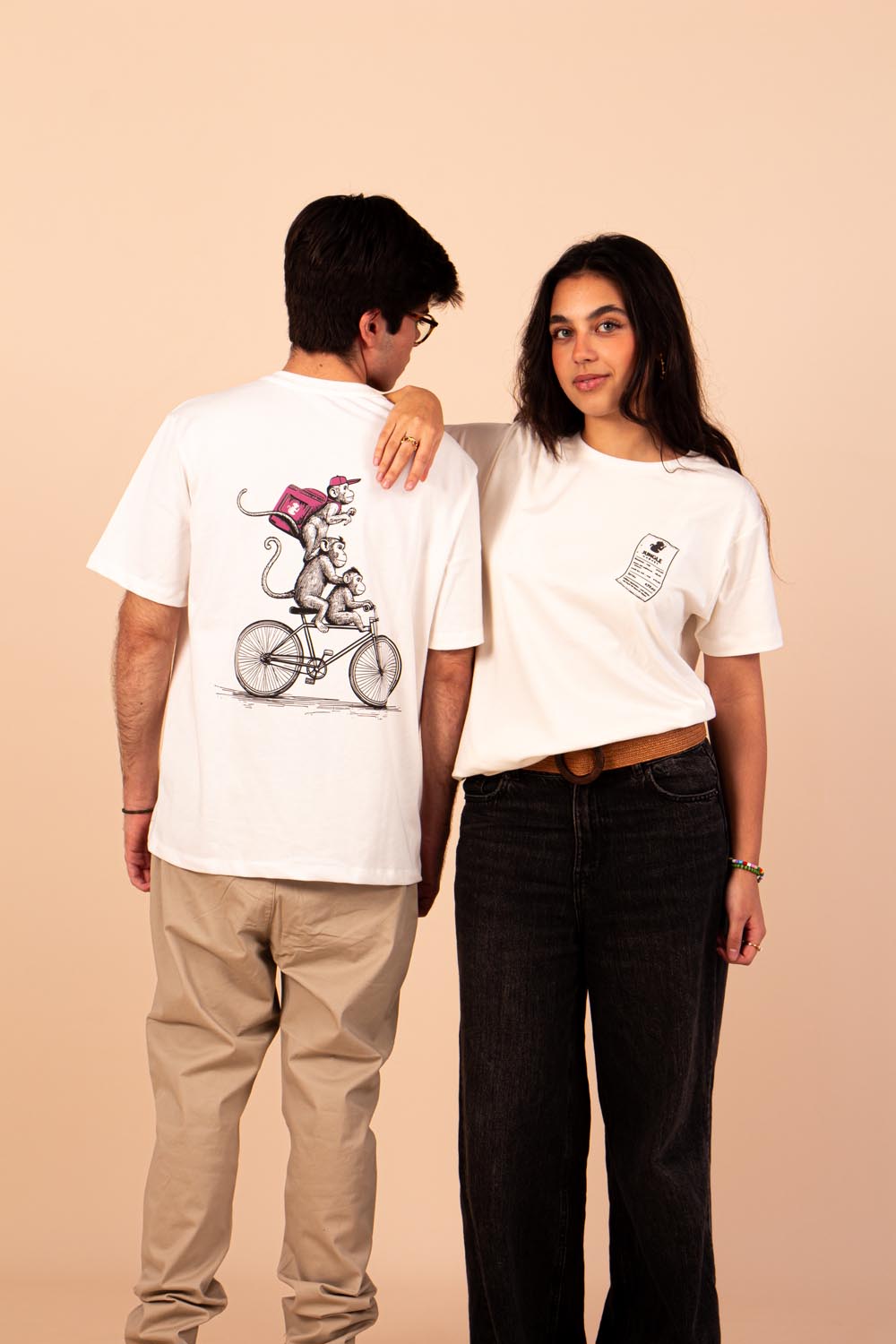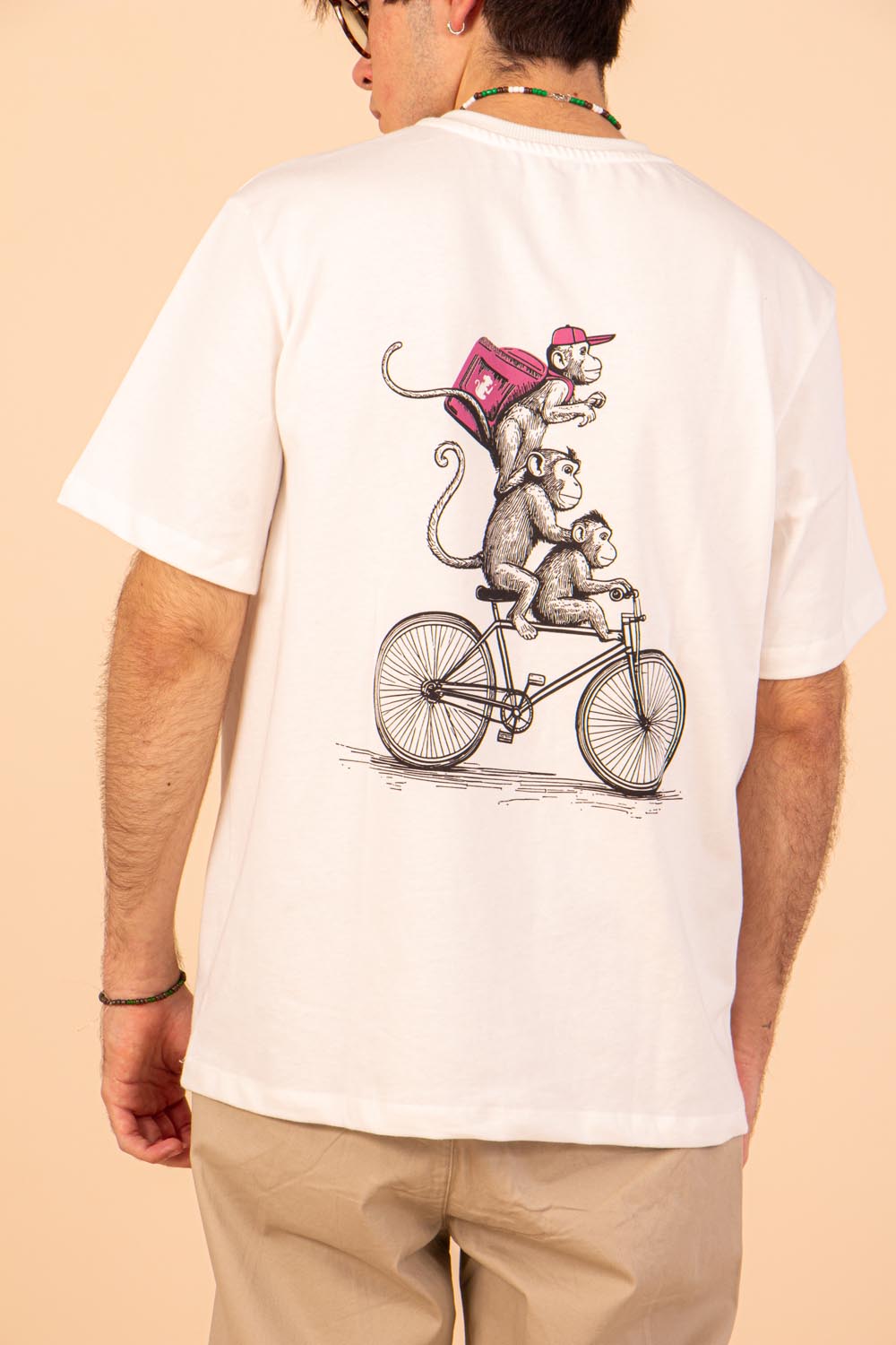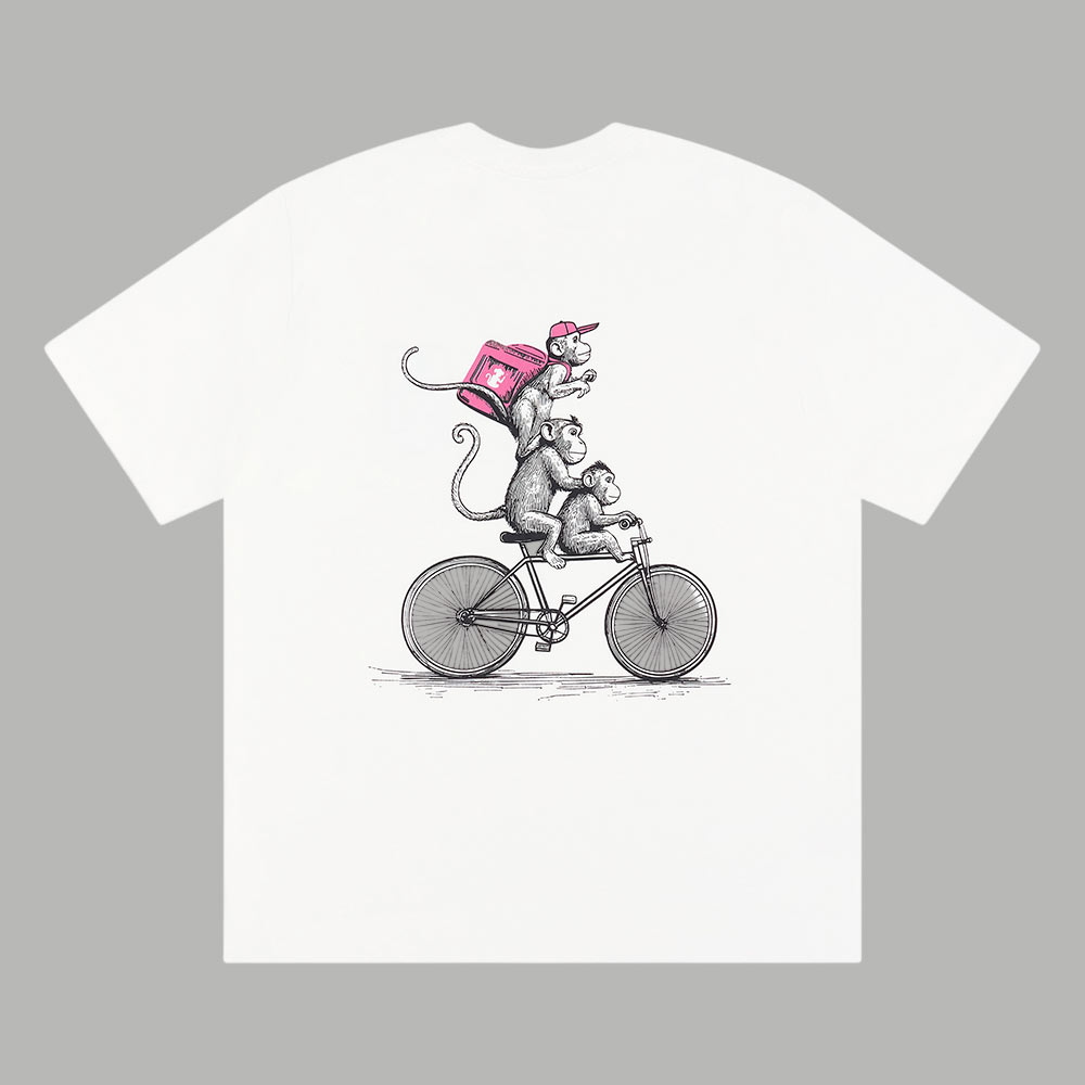 “Monkey Delivery” é a estampa que transforma macacos em entregadores oficiais da Jungle — uma paródia divertida sobre a pressa, o caos e a criatividade da cidade.